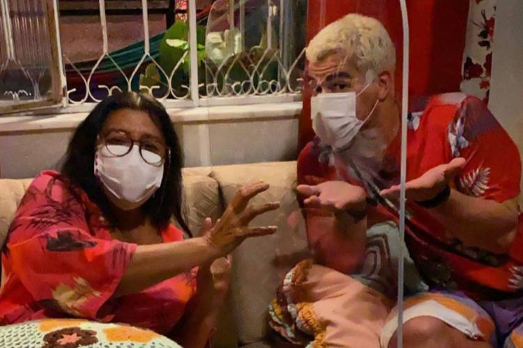 Intérprete de Lurdes, a protagonista do dramalhão, a atriz Regina Casé tem compartilhado de inúmeros registros dos bastidores do que podemos chamar de “novo normal” nos Estúdio Globo. Desta vez, a veterana atualizou suas redes sociais um momento inédito ao lado do ator Thiago Martins, que vive seu filho Ryan na obra.