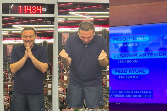 “Sem palavras pra agradecer esse momento! 10 quilos em dois meses. Faltam 10 quilos e mais dois meses. Vamos nessa!!! Quero agradecer aqui essas pessoas incríveis!”, disse Gottino, agradecendo aos profissionais responsáveis por acompanhá-lo durante essa mudança.