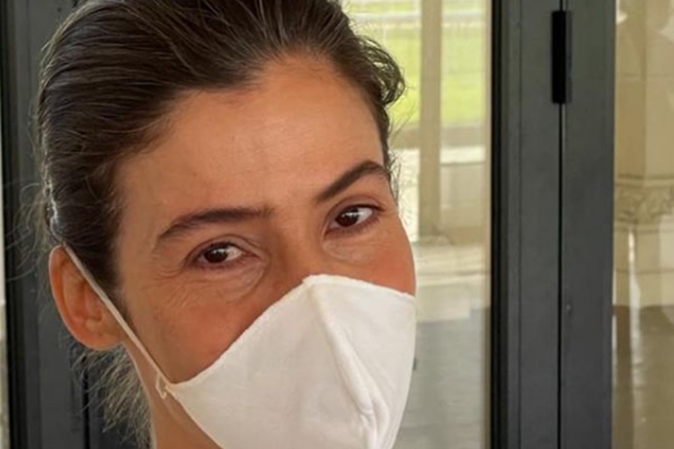 Nas plataformas digitais, Renata compartilhou duas fotos, uma em que surge com a equipe de profissionais da saúde ao seu lado e outra em que aparece sozinha.