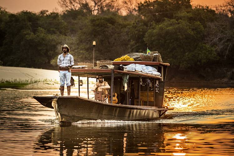 O início das gravações com o Irandhir (Santos) foi muito bom. O Irandhir é um cara que admiro muito, ele sempre foi uma inspiração para mim. Eu fui para o Rio de Janeiro numa época em que ele estava aparecendo com filmes, numa primeira leva de filmes que chamou não só a minha atenção, como do público como um todo. E isso facilitou minha vida ao Rio. Pernambucano, né? Tem aí Irandhir, Hermila Guedes, a cena do cinema pernambucano estava muito forte. E Irandhir era um dos personagens principais desse momento. Eu sempre tive vontade de contracenar com ele porque fizemos ‘Velho Chico’ e ‘Dois Irmãos’, mas não contracenamos. Eu brinco que a gente se deu bem nessa escalação, porque o avô é pernambucano, que é o Irandhir, o pai é pernambucano, que sou eu, e o filho também, que é o Jesuíta (Barbosa), outro ator que também admiro muito. Começar aqui no Pantanal com o Irandhir foi muito especial, você consegue beber muito de uma fonte muito rica num espaço muito curto de tempo. Ele te inspira e te leva de uma forma muito mágica. Eu já tinha começado a gravar, então trouxe o que pesquisei, somei ao que o Pantanal me trouxe, e me deixei levar pela energia que o Irandhir irradia também.