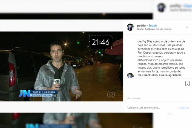 “Dias como o de ontem e o de hoje são muito tristes. Dez pessoas perderam as vidas com as chuvas no Rio. Outras dezenas perderam tudo o que tinham: móveis, eletrodomésticos, objetos pessoais, roupas. Mas, ao mesmo tempo, são nesses dias que o jornalismo se torna ainda mais forte, mais importante, mais necessário”, iniciou o profissional, na legenda da publicação feita no fim da noite desta terça (9).
