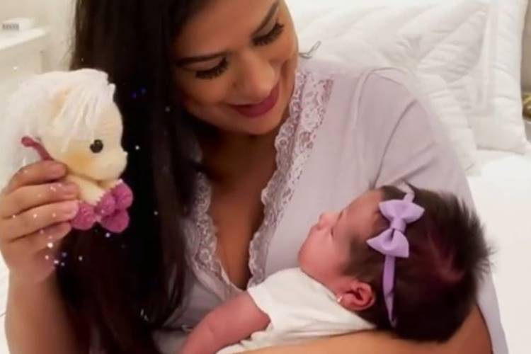 Simone Mendes, da dupla com Simaria, deu à luz Zaya, em fevereiro. A sertaneja e o empresário Kaká  Diniz, já são pais de Henry de 6 anos.