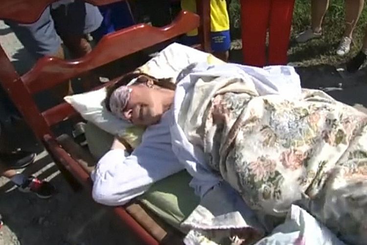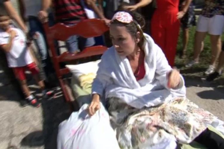 A repórter estava deitada em uma cama e de pijama, no meio da rua da cidade da baixada do Rio de Janeiro, São Gonçalo, denunciando o descaso do governo com a população que está esperando a pavimentação de algumas ruas há, pelo menos, quatro anos.