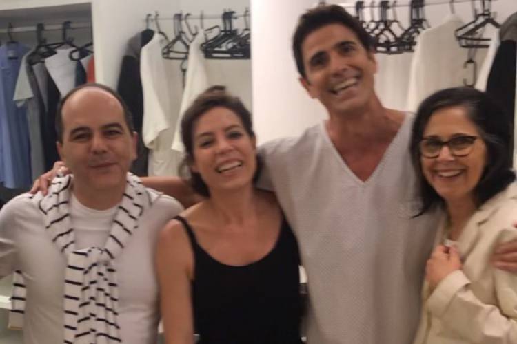 Depois na legenda, Reynaldo falou sobre o trabalho dos profissionais. “Minha homenagem a essa equipe fantástica do figurino. Sabe aqueles ternos e camisas incríveis do Regis? O visual da Maria da Paz meio brega, mas quase chic? Os Looks bafonicos de Vivi Guedes e da Jô? Os ternos impecáveis do Agno? O visual rural /sexy do Chiclete? Pois é, todos esses e de todos os outros personagens são pensados por esse time mega criativo que tem um bom gosto danado!”, escreveu ele.