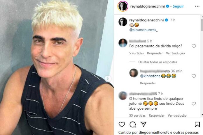 Reynaldo Gianecchini decidiu radicalizar o visual e compartilhou o resultado com seus seguidores no Instagram nesta terça-feira (10). O ator surgiu com os cabelos descoloridos e recebeu elogios nos comentários.