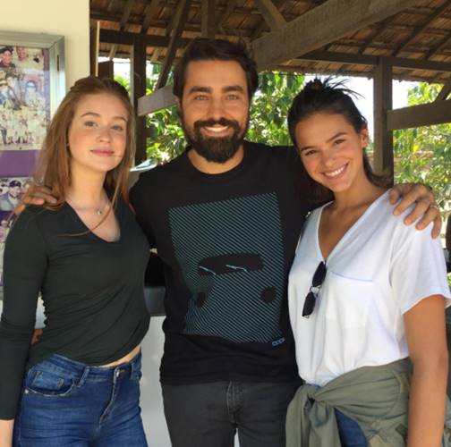 Ricardo Pereira fez a alegria de seus seguidores ao compartilhar uma foto ao lado de Marina Ruy Barbosa e Bruna Marquezine nos bastidores da novela “Deus Salve o Rei“.