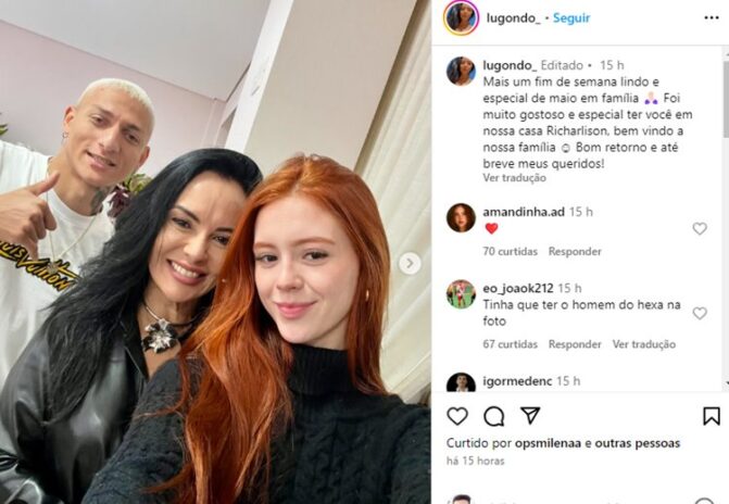 Por meio do feed no Instagram de Luciana Araújo, mãe da nova namorada de Richarlison, ela mostrou o encontro com o jogador da Seleção Brasileira e do Tottenham, clube da Inglaterra, que veio ao Brasil e foi até Maringá, no Paraná, somente para lhe conhecer e, claro, os outros parentes.