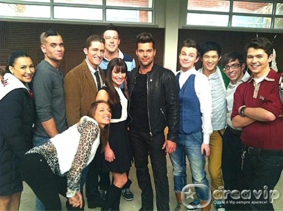 O cantor Ricky Martin postou uma foto no Twitter com o elenco de “Glee” nesta sexta.