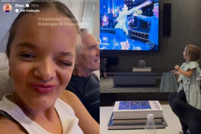 Ao lado de Rafaella Justus, o empresário foi visto no sofá acompanhando a atração e chamou a atenção da herdeira: “Olha a mãe da Rafa, a Tici, na TV”, disse ele empolgado.