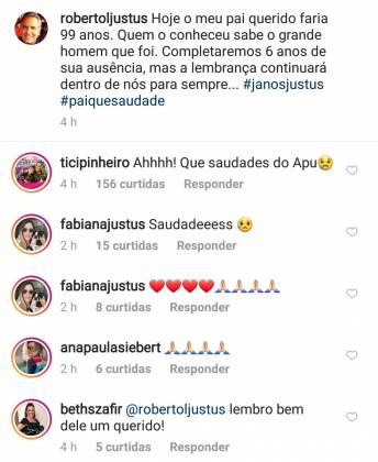 Na legenda, ele escreveu: “Hoje o meu querido pai faria 99 anos. Quem o conheceu sabe o grande homem que foi. Completaremos 6 anos de sua ausência, mas a lembrança continuará dentro de nós pra sempre …”, disse ele.
