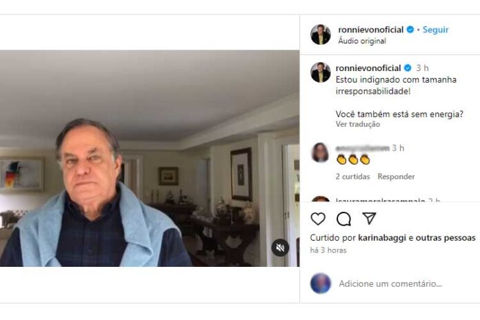 Por meio de seu perfil no Instagram na manhã desta segunda-feira (14), Ronnie Von demonstrou sua indignação após o apagão em São Paulo. Segundo o apresentador, ele está sem energia elétrica desde a última sexta, quando a cidade foi atingida por um grande temporal.
