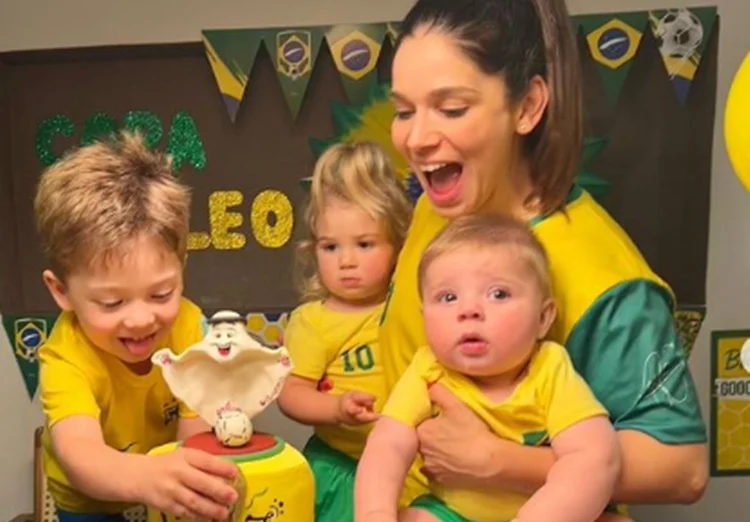 Ela terminou enchendo os herdeiros de carinho. “Às vezes percebo que o tempo está passando rápido demais…daí eu peço baixinho para que ele vá mais de devagar, sabe? Tenho receio de perder alguma fase gostosa sua e dos seus irmãos, mesmo passando a maior parte dos meus dias bem juntinho de vocês rs… Espero poder estar presente em cada pedacinho da sua caminhada. Festejamos por aqui em clima de Copa e desejamos à você um feliz novo ciclo, meu amor!