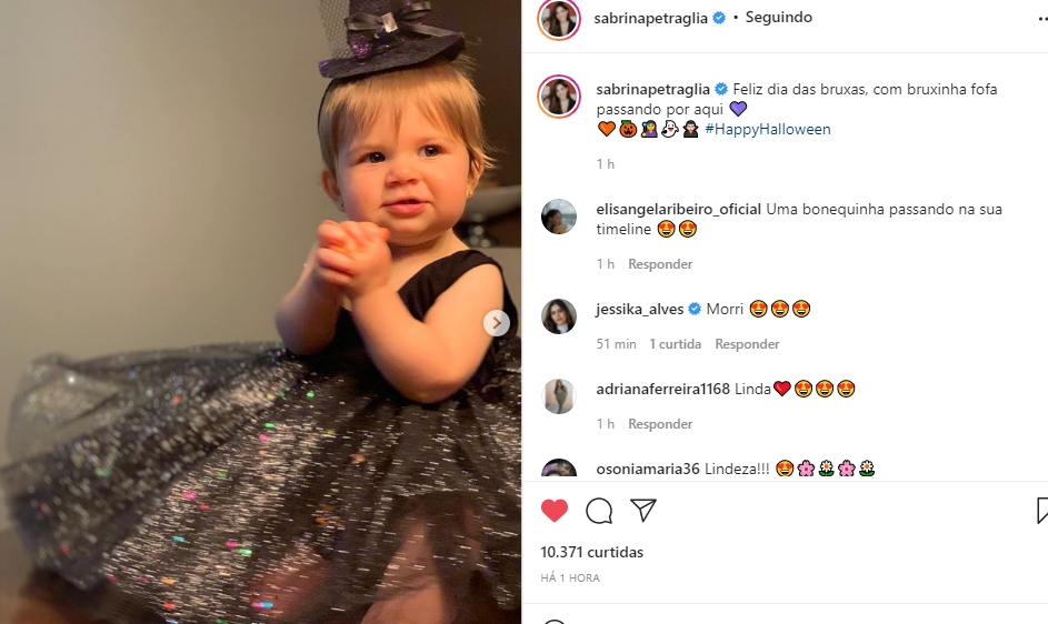 O clima de Halloween segue fazendo festa entre os famosos nesse final de semana, e desta vez a mamãe coruja Sabrina Petraglia foi quem entrou em ação e compartilhou com seguidores um momento muito fofo da pequena.