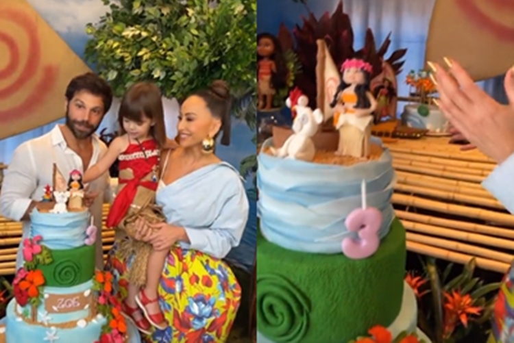 Mamãe coruja que adora compartilhar momentos da filha nas redes sociais, desta vez Sabrina postou uma sequência de cliques da pequena. Zoe surgiu vestida de Moana, tema escolhido para a celebração festiva se fantasiou como a personagem principal do filme da Disney e recebeu convidados.
