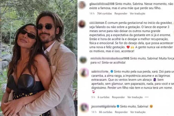 “Sinto muito Sabrina. Nesse momento, não existe a famosa, mas uma mãe que perde o seu filho”, destacou outra. “Sinto muito pela sua perda. Dói para um caramba, a alma rasga, a impotência assume e as lágrimas extravasam. Que os ventos levem um abraço bem apertado, sem glamour, sem paparazzis, nada, para você e seu digníssimo”, desejou outra. O casal ainda recebeu o apoio de diversas pessoas, desejando suas condolências e apoio diante o momento difícil.