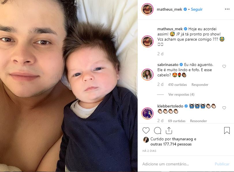 E para comprovar, o sertanejo compartilhou uma foto ao lado do herdeiro e questionou os fãs sobre a semelhança do herdeiro e ele: “Hoje eu acordei assim! JP já tá pronto pro show! Vcs acham que parece comigo???”, questionou ele.