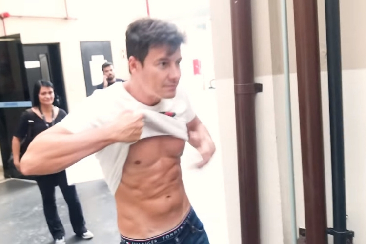 Na hora de se despedir, a japa ficou impressionada com a boa forma de Faro aos 46 anos e brincou: “Rô! Você está com 20 anos”, em referência ao seu abdômen trincado.
