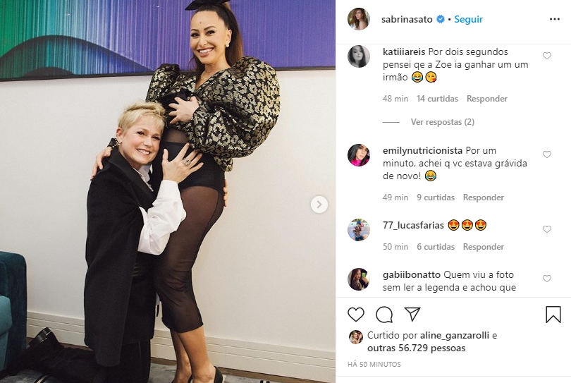 A publicação recebeu muitos comentários perguntando se a apresentadora estava grávida. “Achei que Zoe ia ganhar um maninho”, disse um fã. “ Quem viu a foto sem ler a legenda e achou que era anúncio de gravidez?, disse mais um internauta. “Por um minuto, achei que vc estava grávida de novo!”, comentou outra fã da apresentadora.