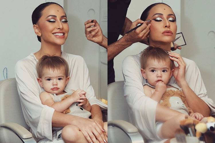 Nesta quarta-feira (22), Sabrina surgiu em outro momento especial com a filha. Zoe aparece no colo da mãe enquanto ela é maquiada para gravar. “Esperando a minha mãe no colo porque sou a próxima da fila”, brincou a comunicadora na legenda da postagem.