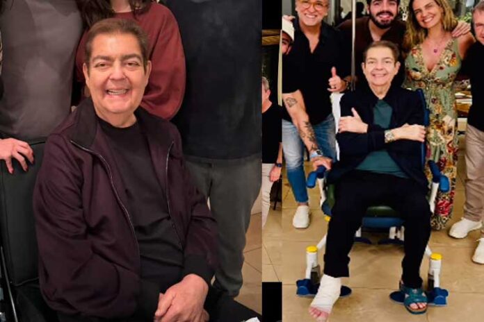 Fausto Silva, o Faustão, apareceu com os pés enfaixados e em uma cadeira de rodas em um registro compartilhado nas redes sociais. Muitos questionaram o verdadeiro motivo por trás da imagem do apresentador.