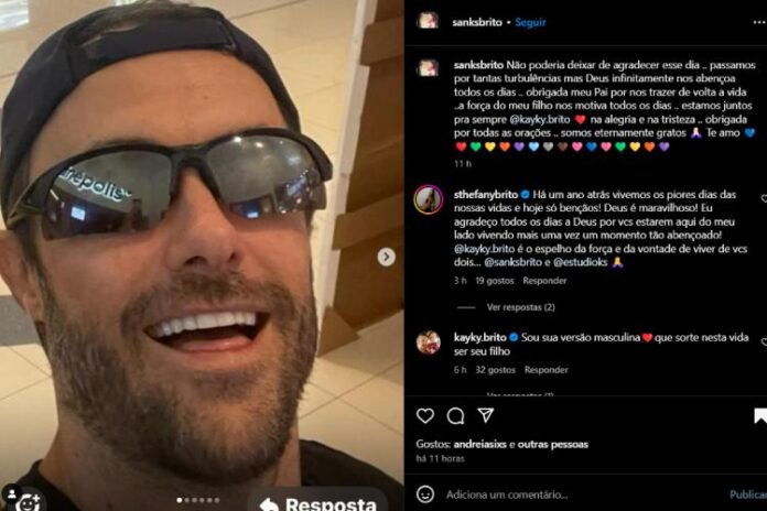 “Não poderia deixar de agradecer esse dia. Passamos por tantas turbulências, mas Deus infinitamente nos abençoa todos os dias. Obrigada meu pai por nos trazer de volta a vida. A força do meu filho nos motiva todos os dias. Estamos juntos para sempre Kayky Brito, na alegria e na tristeza. Obrigada por todas as orações. Somos eternamente gratos. Te amo”, escreveu Sandra Brito no Instagram.