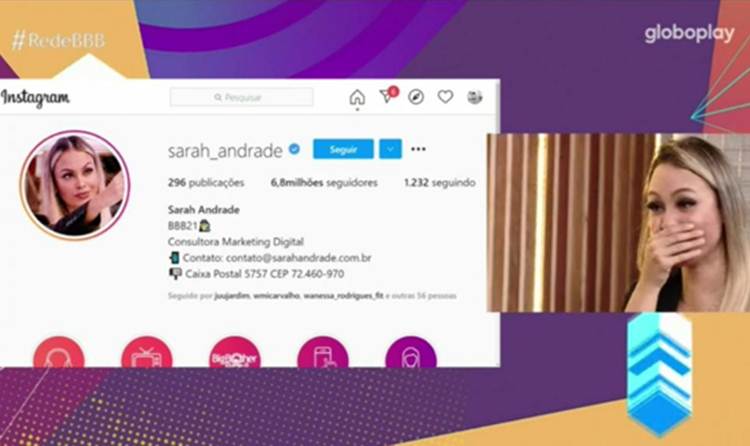 Em bate papo com Ana Clara na madrugada logo após deixar o reality, Sarah se espantou com o número de seguidores que conseguiu depois de entrar para o jogo. Sem saber dos sobe e desce de fãs desde que começou na disputa, ela lembrou que tinha apenas pouco mais de 18 mil fãs na rede social antes do ‘BBB21’.