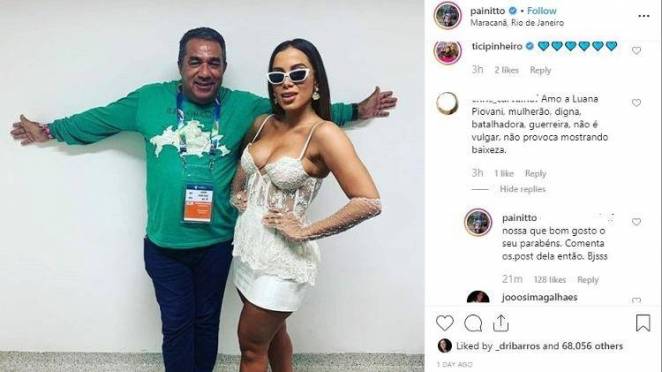 “Amo a Luana Piovani, mulherão, digna, batalhadora, guerreira, não é vulgar, não provoca mostrando baixeza”, escreveu. “Nossa, que bom gosto o seu. Parabéns. Comenta os post dela, então. Beijos”, rebateu o Painitto. A resposta bem-humorada, ganhou dezenas de likes.