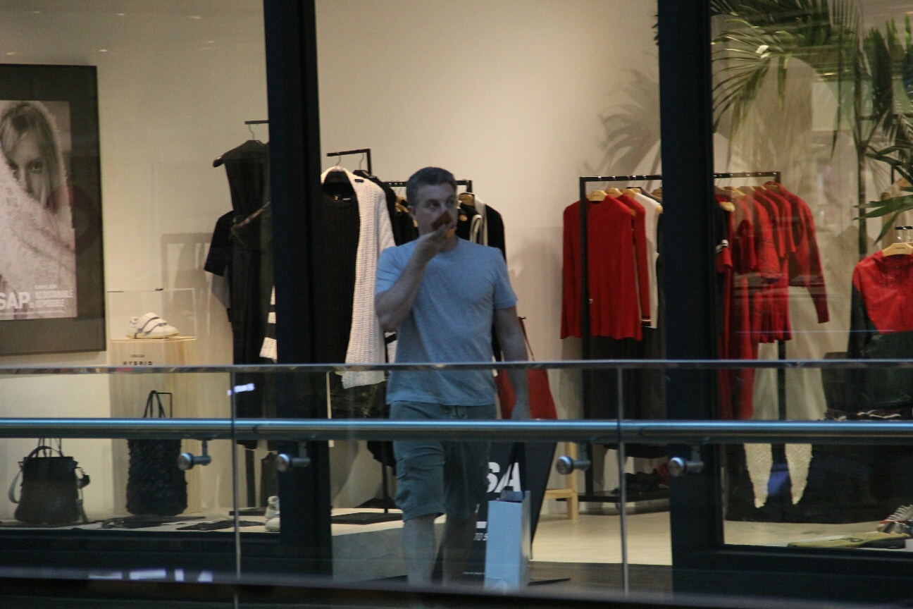 Ele foi clicado pelos fotógrafos, no centro comercial localizado na Barra da Tijuca.