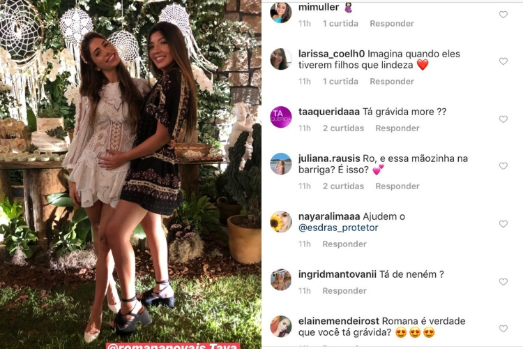Bastou Jaya aparecer com a mão na barriga da esposa de Alok, para as especulações tomarem conta da cabeça dos seguidores. “Romana é verdade que você está grávida?”, questionou um seguidor. “Rô, e essa mãozinha na barriga? É isso?”, questionou outro fã.