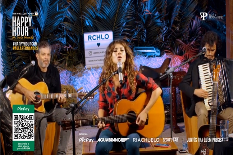 Paula Fernandes está fazendo uma nova live, na tarde deste domingo (24), a Happy Hour com Paula Fernandes, e o cenário escolhido foi sua chácara, no interior de Minas Gerais.