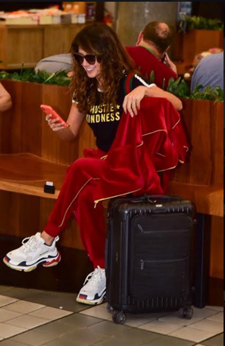 Muitas vezes já foi rotulada como antipática, ela dessa vez foi só sorrisos e mesmo na correria parou para dar atenção aos fãs que pediram para tirar foto com a cantora. Apostando em um look bem confortável, a cantora usava uma camiseta preta e um conjunto, de calça e blusa de frio, vermelho. Também estava de óculos escuros e tênis. ( Veja foto logo abaixo)