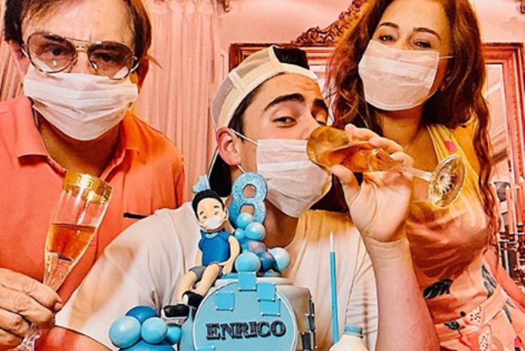 Usando o bom humor em um momento tão complicado, ele tentou deixar o clima mais leve com a decoração do bolo que fez referência ao momento de quarentena, com álcool gel e um boneco representando Enrico usando máscara no rosto.