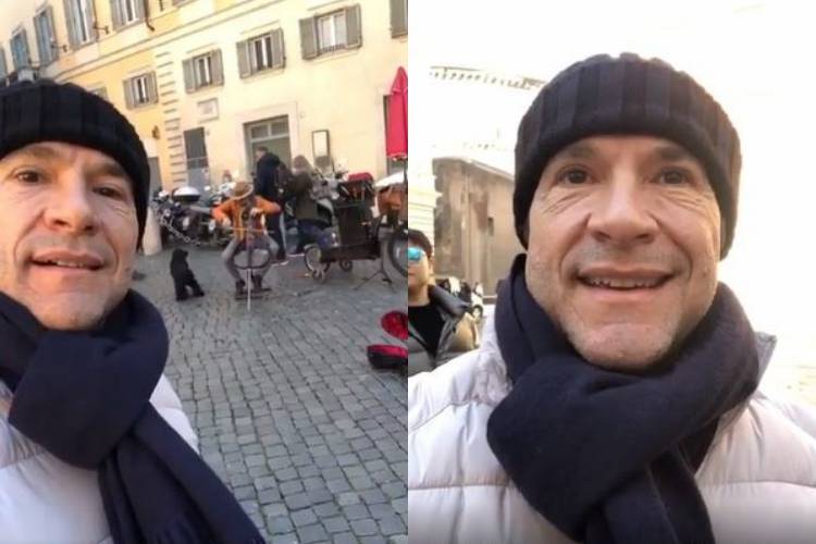 “A gente tá aqui na Itália, dando uma volta com a família, quando a gente se depara com um som, é algo inexplicável, a gente para pra ver e pra ouvir. E o cara é performático. Estamos em Roma”, disse o sertanejo no vídeo.