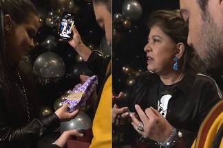 Uma das celebridades convidada foi Roberta Miranda, que roubou a cena na hora de entregar os presentes. Pouco tempo após tirarem as fotos, a cantora pediu para os pombinhos sertanejos Maiara e Fernando abrirem seu presente, para ver as reações…Assista o vídeo!