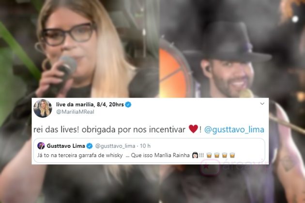 Na ocasião, o marido de Andressa Suita fez sua confissão, destacando o status de ‘sofrência’ predominante nos quatro cantos do país ao som de Marília. “Já to na terceira garrafa de whisky … Que isso Marília Rainha”, escreveu o artista. Em sua conta, a artista concedeu seus sinceros agradecimentos ao famoso, e concluiu: “Rei das lives! obrigada por nos incentivar”, disse, na madrugada desta quinta-feira (9).