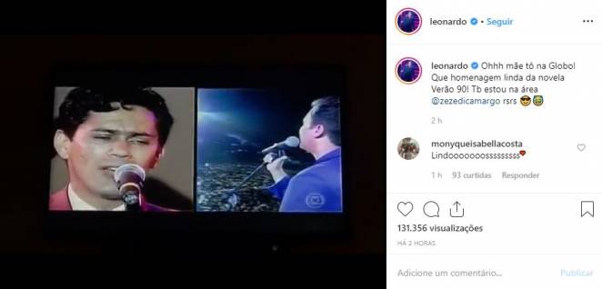 No Instagram, Leonardo postou o trecho da cena e celebrou a homenagem que foi feita a ele e o irmão Leandro, que faleceu em 1998.
