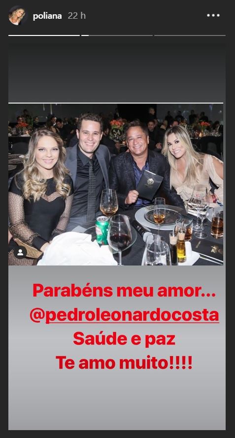 Poliana publicou uma foto ao lado do maridão, do Pedro Leonardo e da mulher dele e escreveu: “Parabéns meu amor … @pedroleonardocosta. Saúde e paz. Te amo muito!!!!”, escreveu ela no registro.