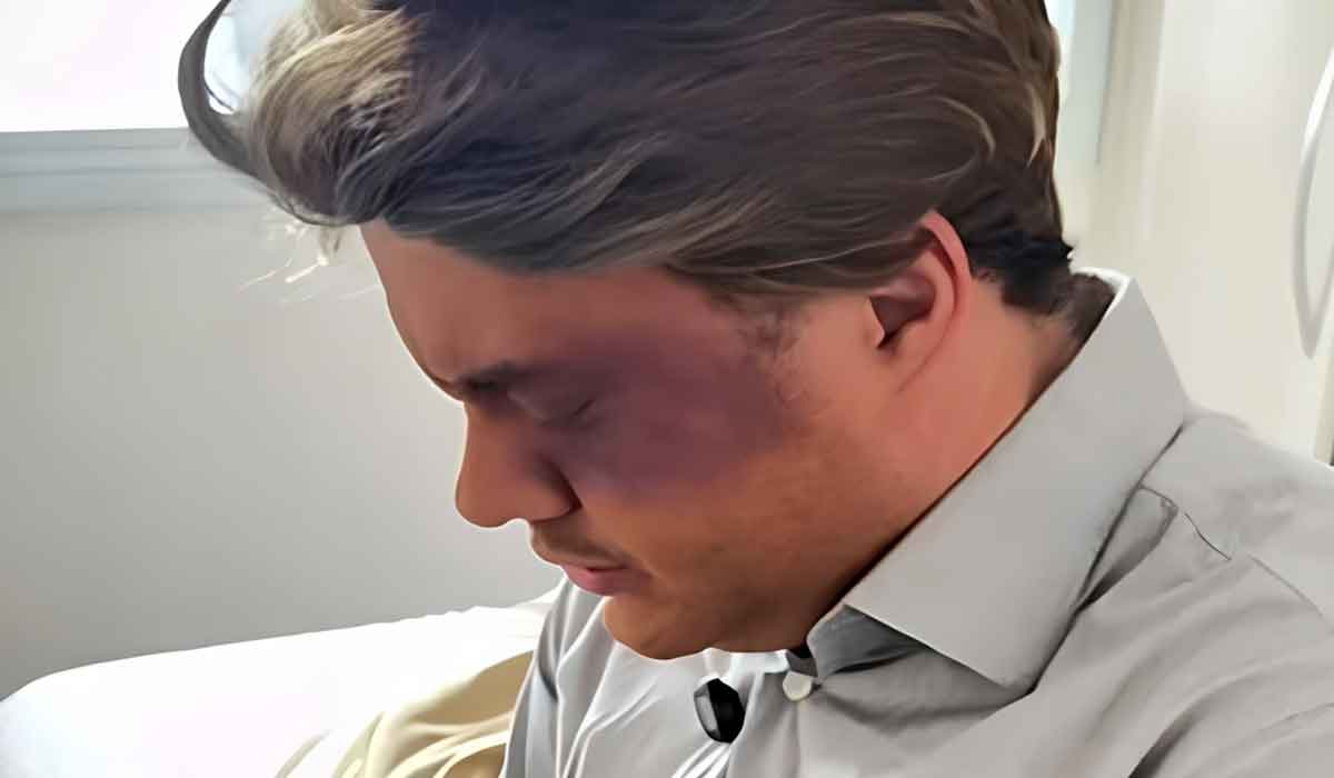 O artista sofreu um pequeno acidente durante a pescaria enquanto estava em uma canoa. Ele escorregou e caiu, ficando com o olho roxo. Poliana achou prudente que eles fossem até o hospital para realizar uma tomografia.