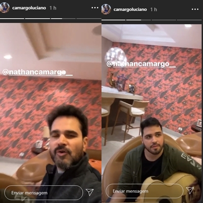 Já na parte dos stories na noite desta sexta-feira (31), o sertanejo mostrou o encontro dos dois, Luciano que está acostumado a ser a segunda voz da dupla, dessa vez surgiu soltando o vozeirão, enquanto o filho tocava violão, Luciano cantava. Vale lembrar que o sertanejo Luciano também é pai de Weslley Camargo, Talita Camargo, e as gêmeas Isabella Camargo e Helena Camargo, fruto do seu atual casamento com a arquiteta Flávia Camargo.