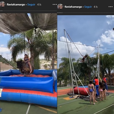 A festa que foi feita em casa e contou com convidados das meninas e alguns brinquedos para diversão e claro muita pizza. Luciano Camargo usou seus stories do Instagram, e mostrou a diversão da criançada tomando banho de piscina.