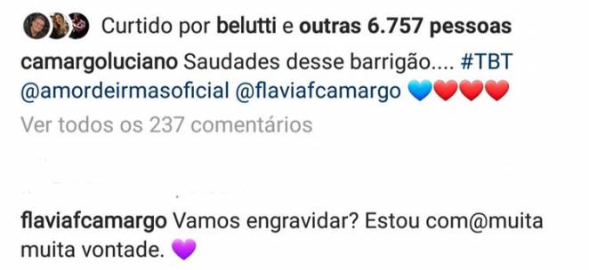 Entre tantos comentários, um chamou atenção, o de Flávia Camargo que revelou um desejo e fez um pedido especial ao marido. “Vamos engravidar? Estou com muita muita vontade”, comentou ela, que recebeu muito apoio dos seguidores.