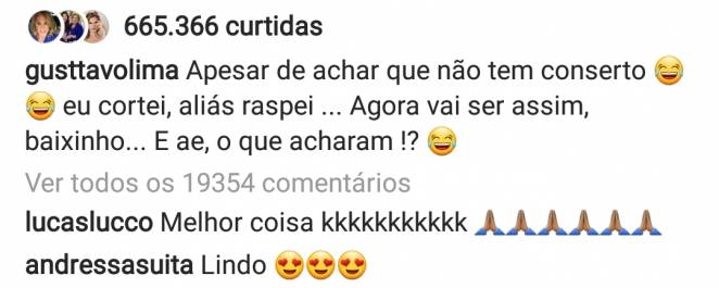 Os seguidores foram só elogios ao cantor: “Fica lindo de qualquer jeito”, “Tá maravilhoso”, “Fica lindo até careca bebê”, foram apenas alguns.