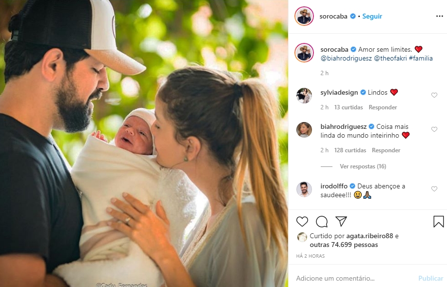 “Hoje pude viver a maior experiência da minha vida, a chegada do meu filho, vindo de um parto lindo e natural. Biah Rodrigues, você foi incrível meu amor, que coragem!Foi mágico, que Deus te abençoe meu filho”, escreveu o cantor na época na legenda da foto onde aparece com o filho e a mulher. (veja a foto aqui)