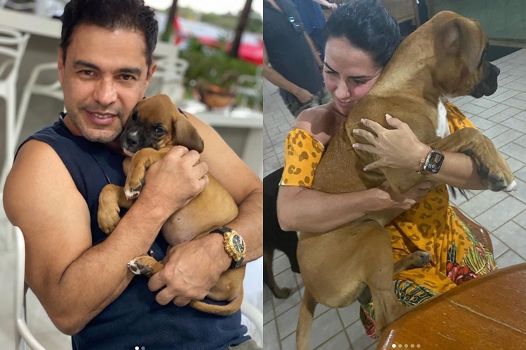 Zezé Di Camargo postou dois cliques, um de quando o animal era bem pequeno e outro já dele maiorzinho, e falou sobre o cachorrinho “Pegamos o Nescau pequenininho, cuidamos, medicamos e demos mto amor”.