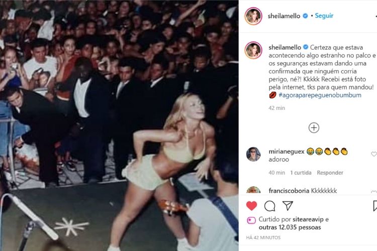 A imagem, enviada aos seus mais de cinco milhões de seguidores, deixou a todos surpresos. É porque Sheila Mello passou por uma situação bastante diferente. Os seguranças do show, que tinham que olhar o público, para evitar algo, estavam olhando outra coisa.
