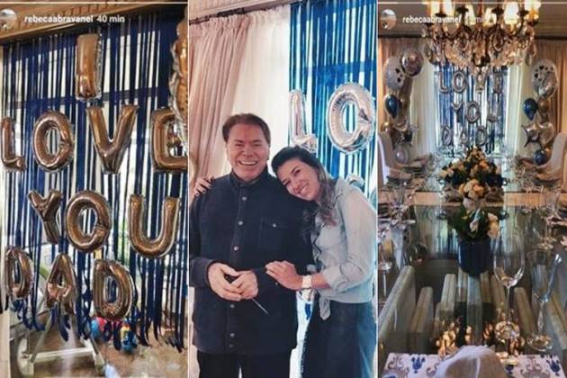 Pai de seis filhas e avô de 11 netos, o dono do SBT ganhou um festa em sua homenagem. Quem compartilhou alguns detalhes, ainda que poucos, foi Rebeca Abravanel, filha de número cinco do comunicador. Em seu Stories do Instagram, a apresentadora do Roda a Roda Jequiti postou algumas fotos mostrando a decoração da mesa e uma ao lado de seu paizão.