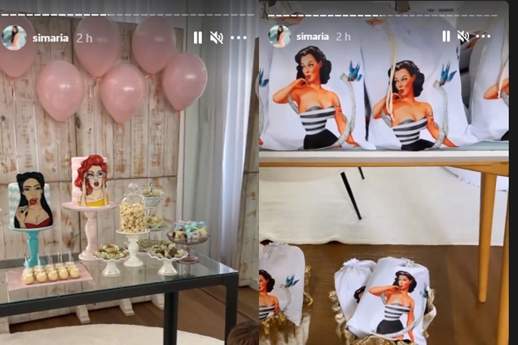 “Gente, olha que coisa mais linda. Sou apaixonada por pin-up”, contou ela ao mostrar a mesa do bolo. A famosa também exibiu nas postagens a lembrancinha da festa, é uma necessaire com foto de pin-up. “Acho a coisa mais fofa”, elogiou ela.