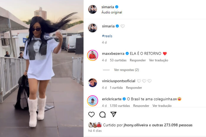 Logo os seguidores reagiram ao retorno da artista as redes sociais: “ELA É O RETORNO ❤️”, “E ainda assim ela se levanta… 🙌👏👏 Que essa força que te move esteja sempre com você, Simaria. Estamos aqui te esperando😍”, “Uma mãe que pausa a carreira para prioriza os filhos! Tem todo meu carinho, respeito e admiração!” e “Mesmo que passe toda a minha vida eu te esperarei 🤍✨”, foram alguns dos comentários.