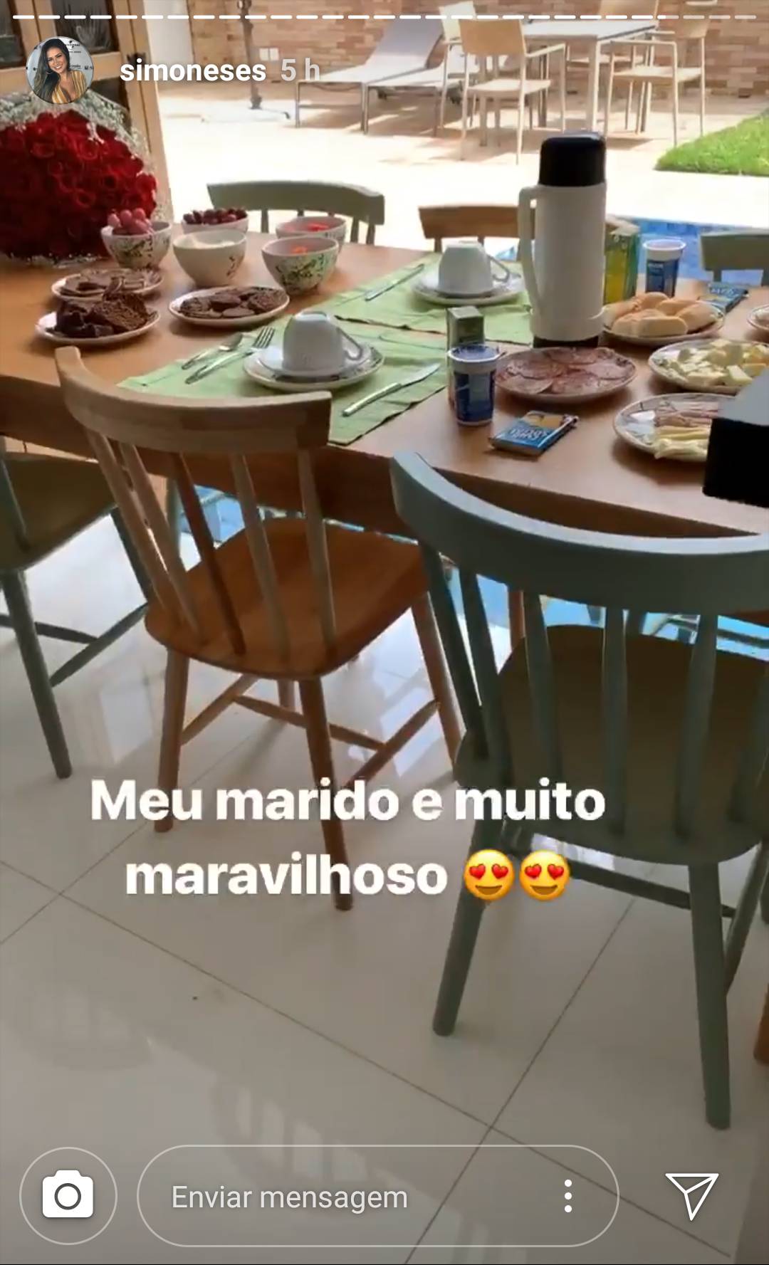 Nesta sexta-feira, através da função Stories do Instagram, Simone compartilhou uma surpresa que ganhou do marido.