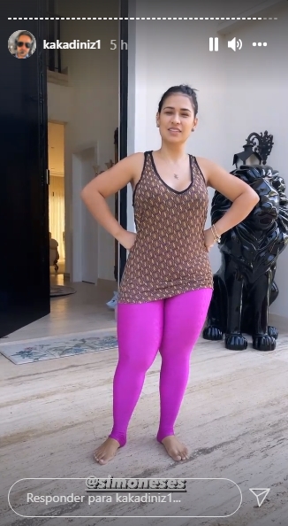 “Bom dia, gatona. Minha filha, vou te dizer uma coisa. Você está sendo um exemplo para mim. Nunca imaginei, em nove anos de casamento, o foco que você está tendo em treino, alimentação. Você está me dando uma aula”, declarou Kaká.